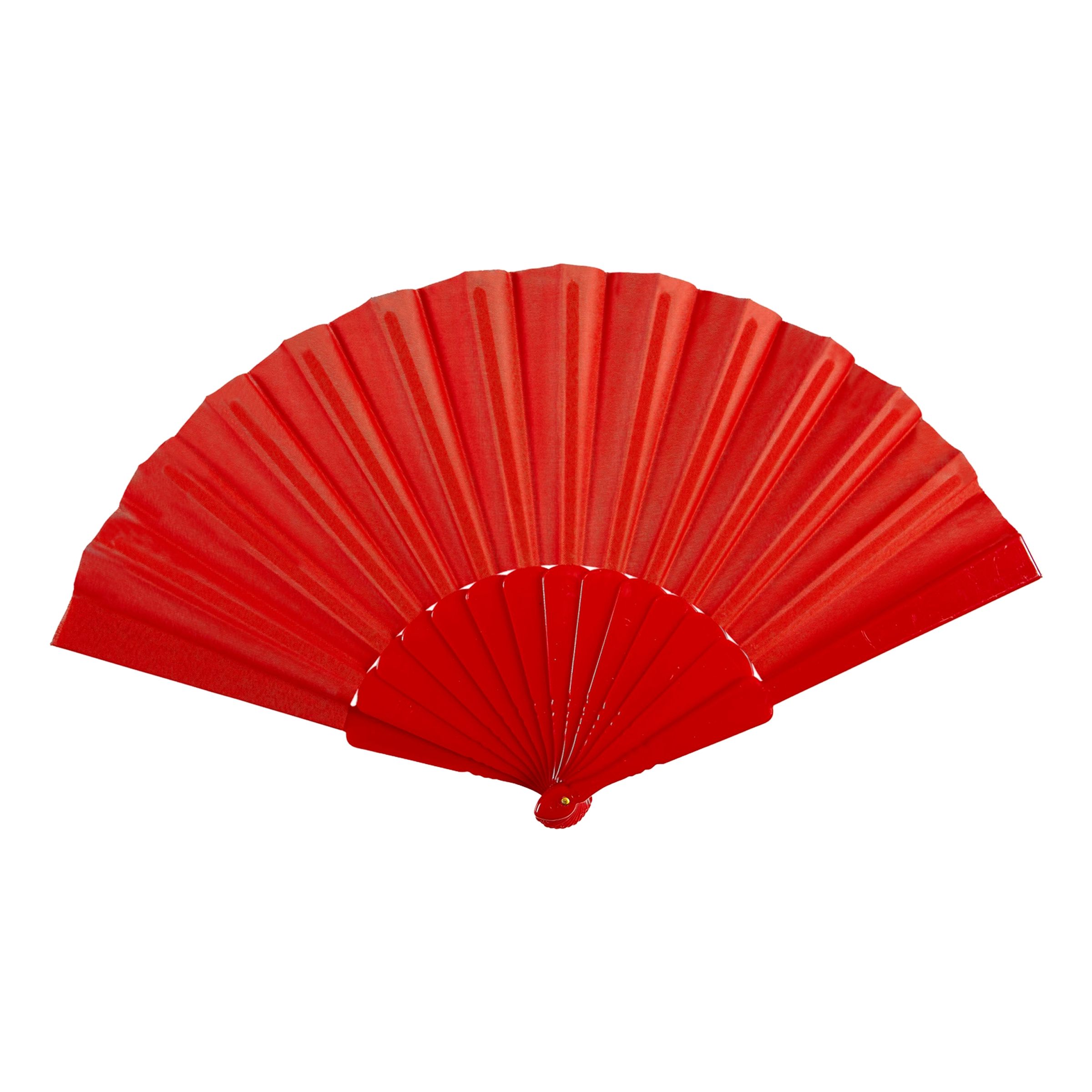 Solfjäder Röd är tillverkad av plast och polyester. Passar perfekt till can can-festen!