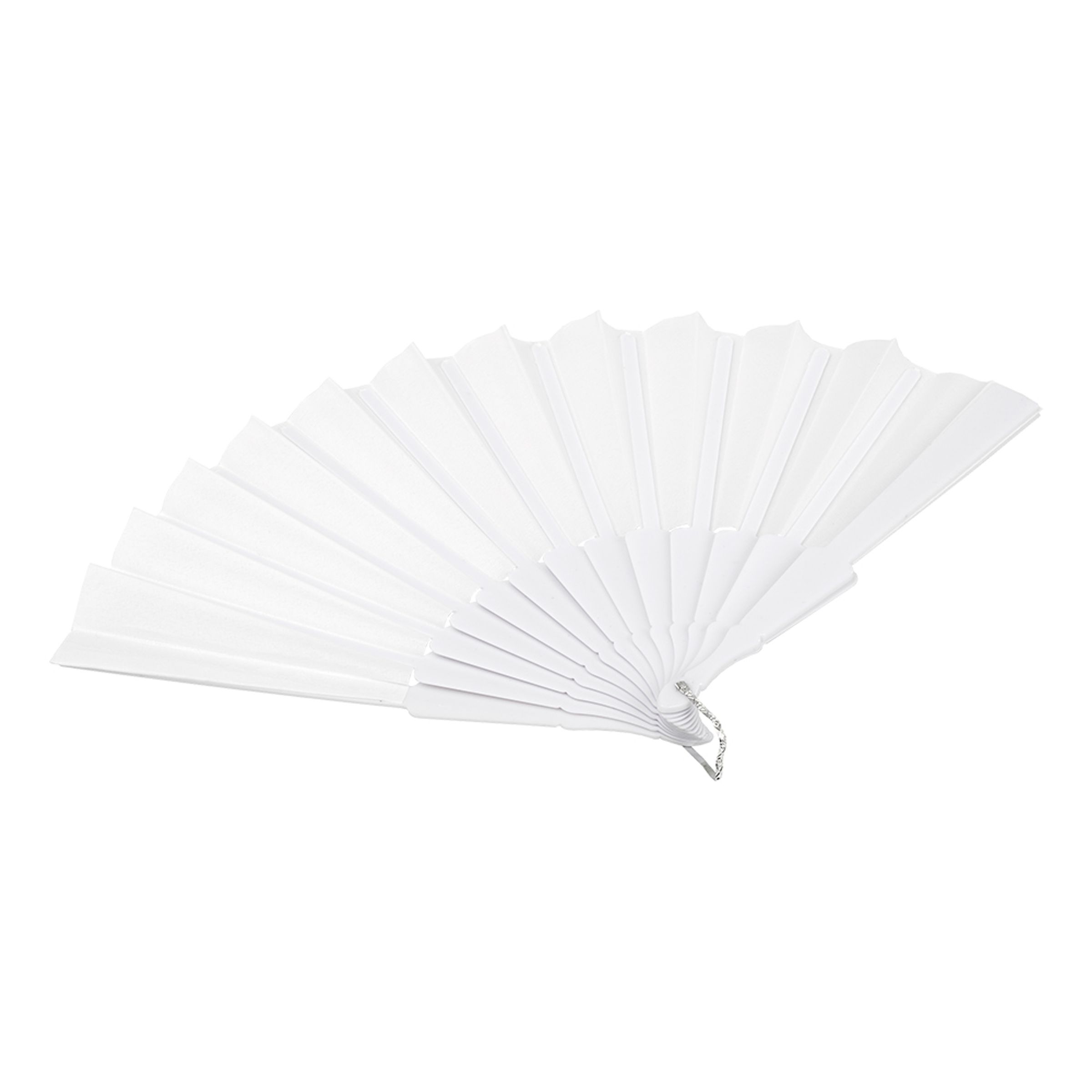 Solfjäder Vit i Plast kommer med tunt vitt tygliknande material och är ihopfällbar.