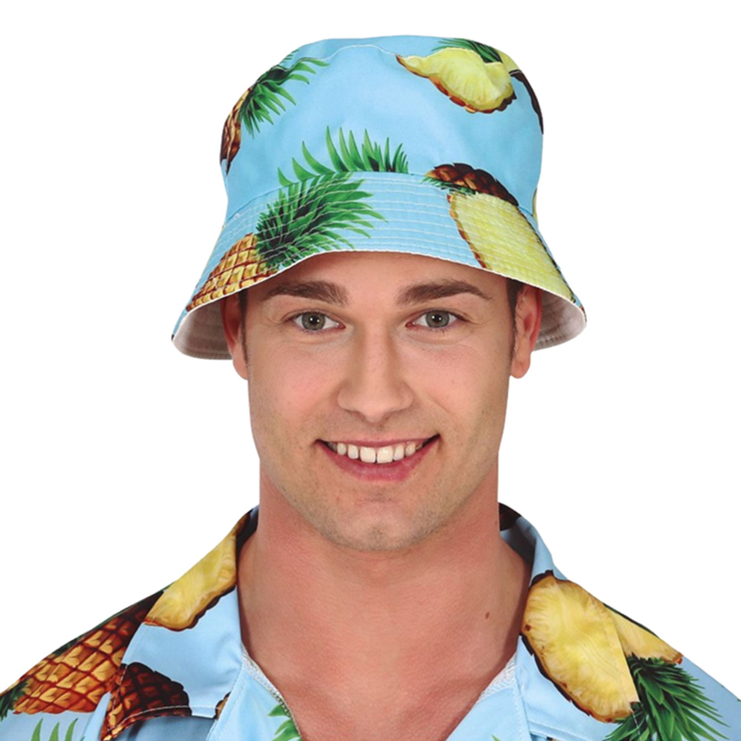 Solhatt med Ananaser är en blå bucket hat som kommer med motiv föreställande skuren ananas. Ett klockrent tillbehör till sommartemat eller om du helt enkelt vill har en snygg hatt till vardags!