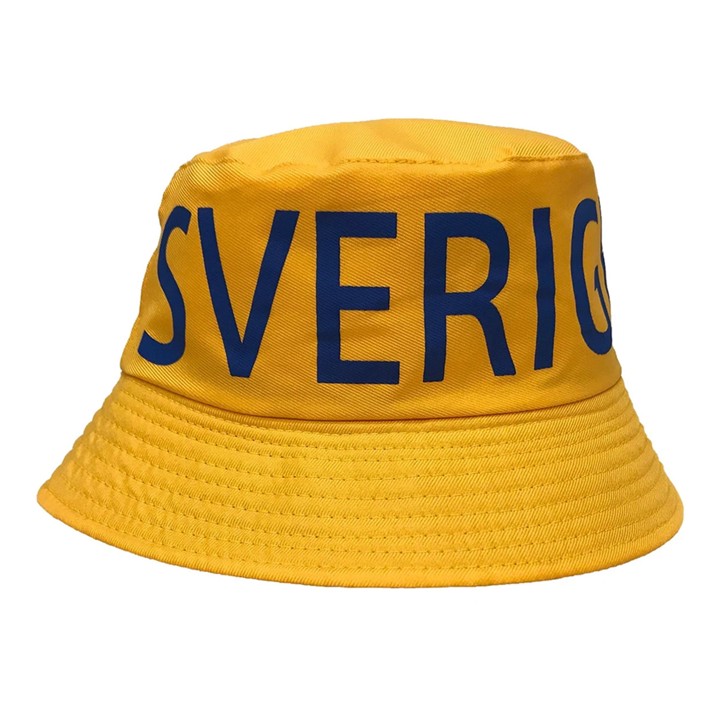 Solhatt Sverige Gul är en solhatt i färgerna gul och blå med texten "Sverige" tryckt fram och baktill på hatten. Solhatten är i One size (för vuxna) och mäter ca 58 cm.