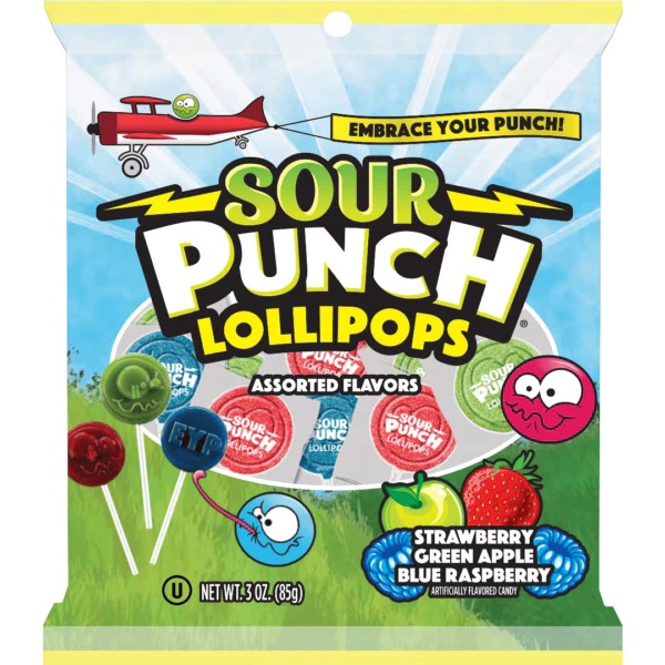 Syrliga klubbor med intensiv smakexplosion. Perfekt för den som älskar surt godis. Blandade fruktiga smaker ger en spännande smakupplevelse. Idealiska som belöning, festgodis eller för att stilla sötsug.