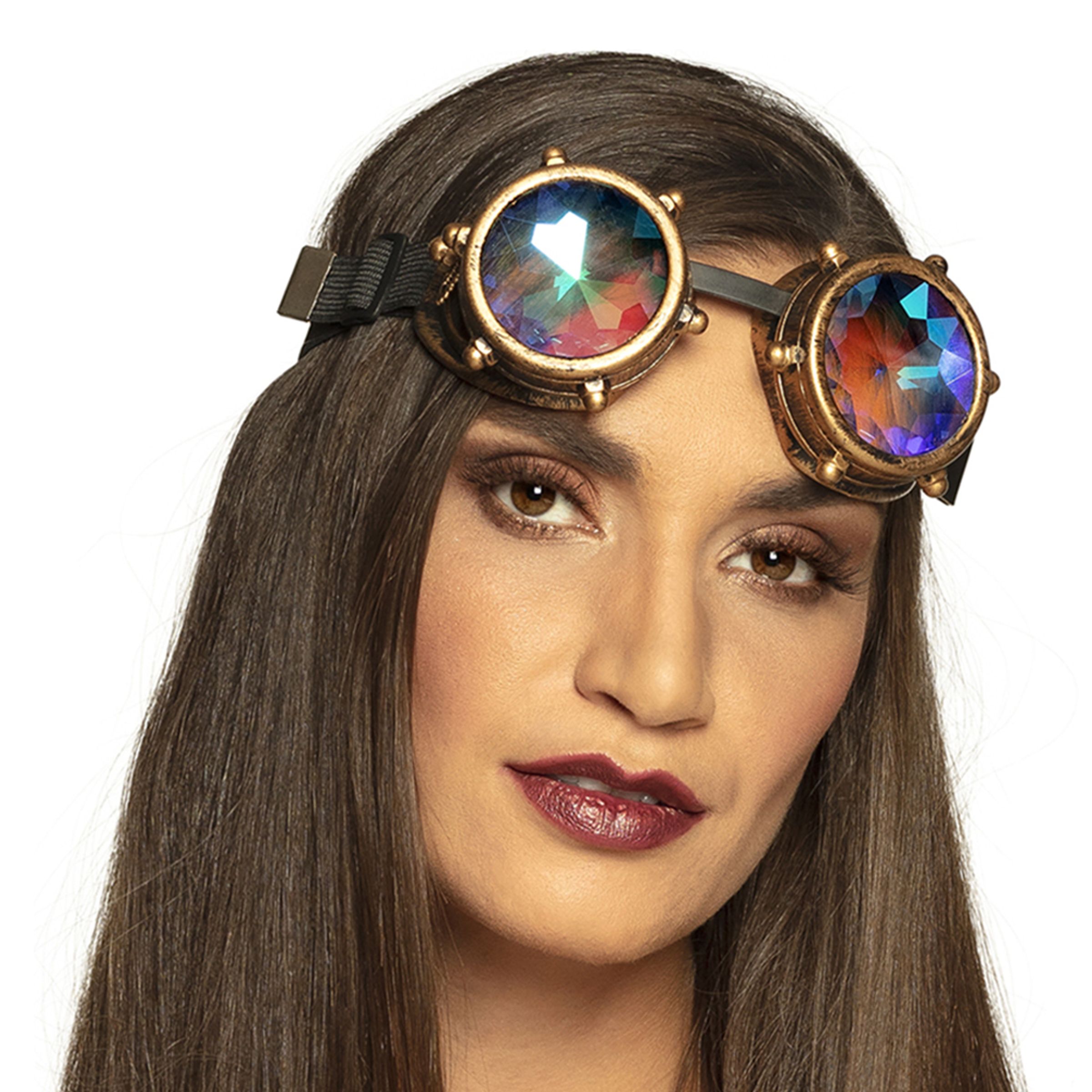 Spacepunk Glasögon är ett par glasögon med prismor. Glasögonen hålls på plats med ett svart band runt huvudet. De är tillverkade i plast och finns i en storlek som passar vuxna.