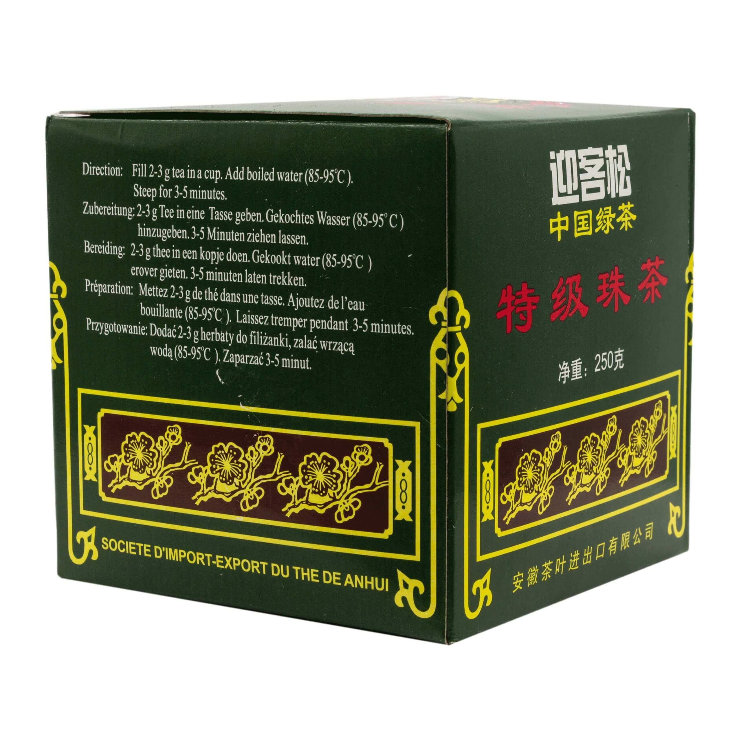 En rejäl förpackning med kinesiskt grönt te (Gunpowder), som fått sitt namn då teet påminner om krut till sitt utséende.