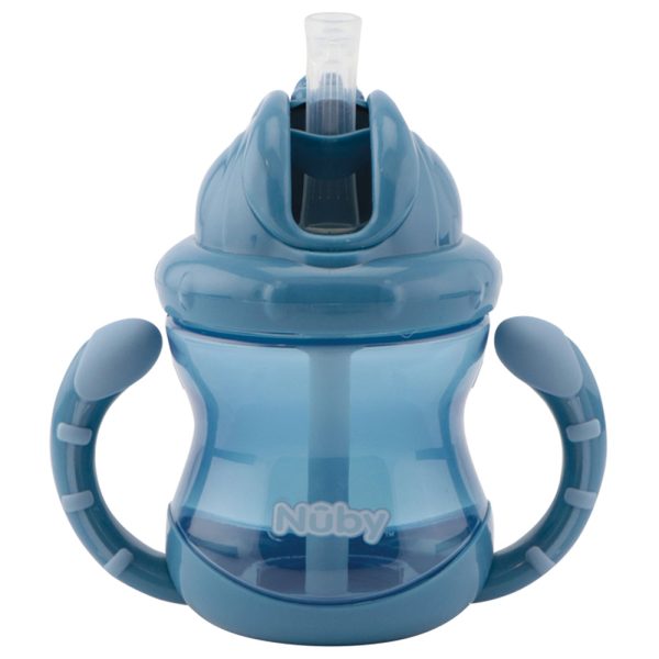 Spillfri Mugg Blå 270 ml omfattar en genomskinlig blå spillfri mugg för barn med silikonsugrör, blått lock och två matchade Variflow-handtag som låter barnet styra vätskeflödet.