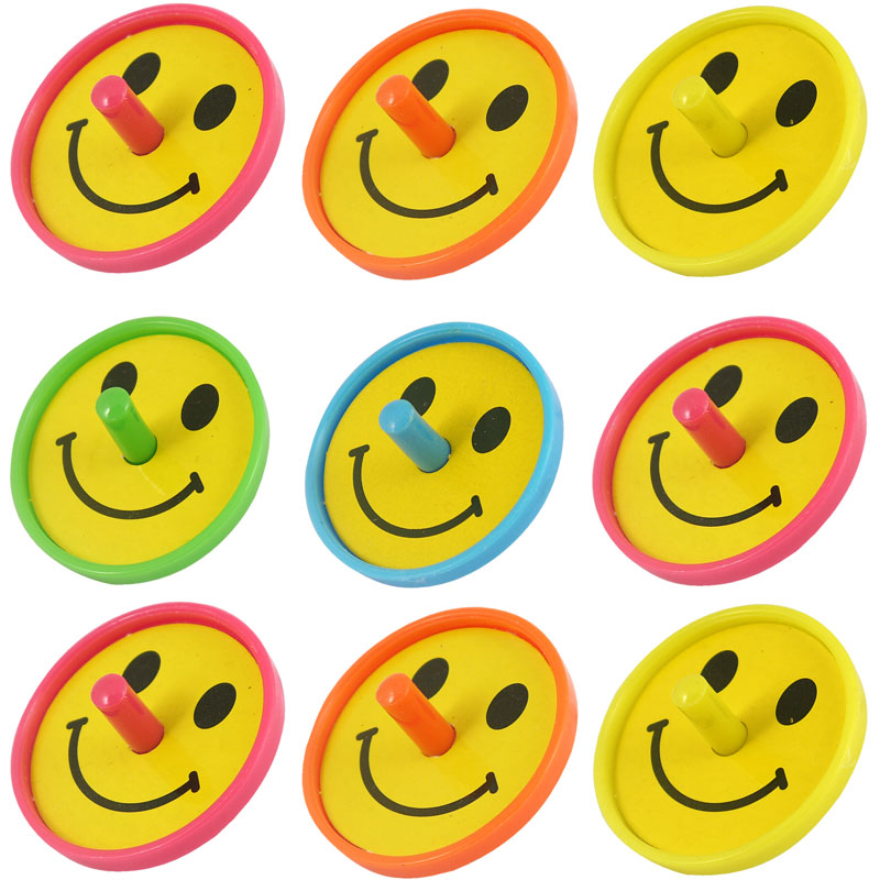 Spin-Top Smiley är en klassisk snurra med ett glatt smiley ansikte tryckt framtill. Snurran blir ett roligt tillbehör för småttingarna vid kalaset.