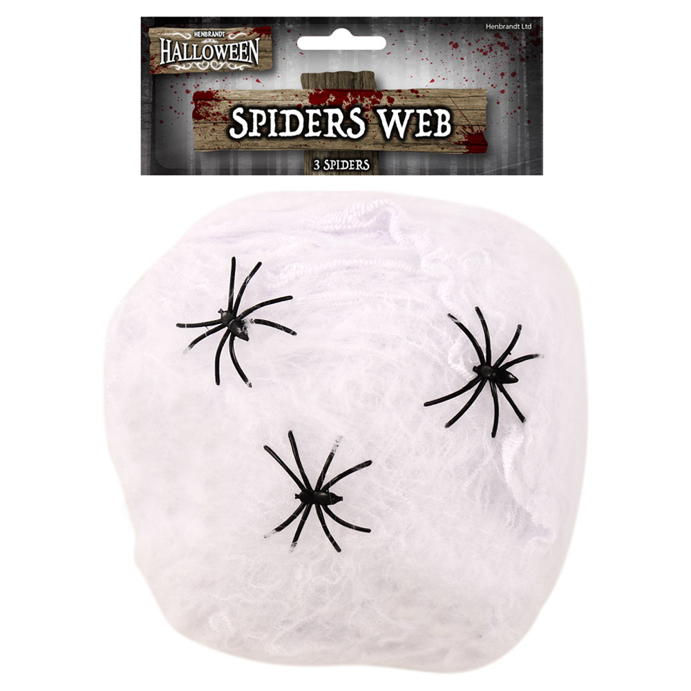 Spindelnät hör halloween till, det är helt enkelt ett måste som dekoration och får genast hela rummet att kännas riktigt kusligt. Dekorera med det här halloween spindelnätet och de medföljande spindlarna och få snabbt till ett stämningshöjande pynt till skräckfesten. Passande spindelväv för alla olika typer av halloweenfiranden.