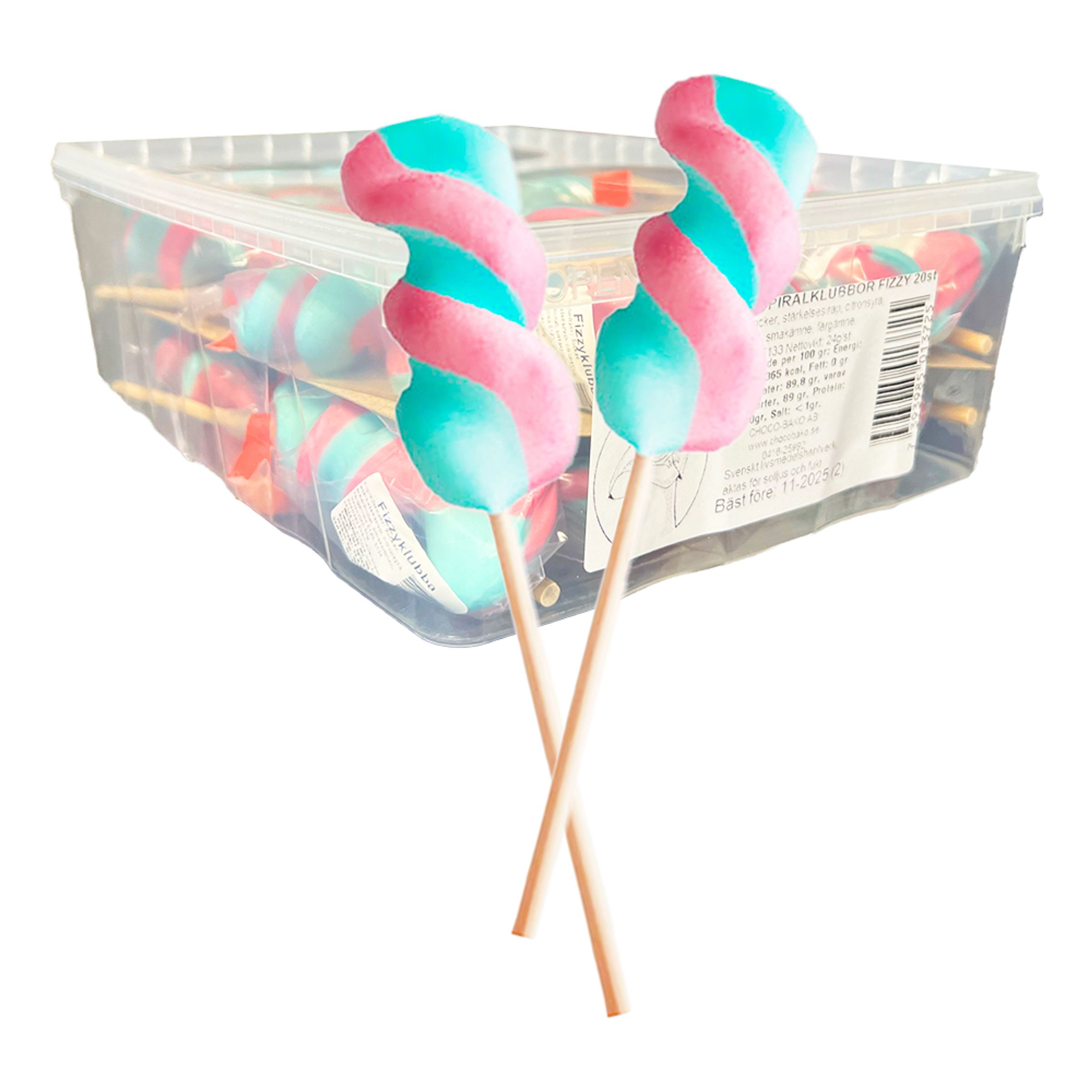 Spiralklubba Fizzy Storpack säljs i 20-pack om 50 gram styck.