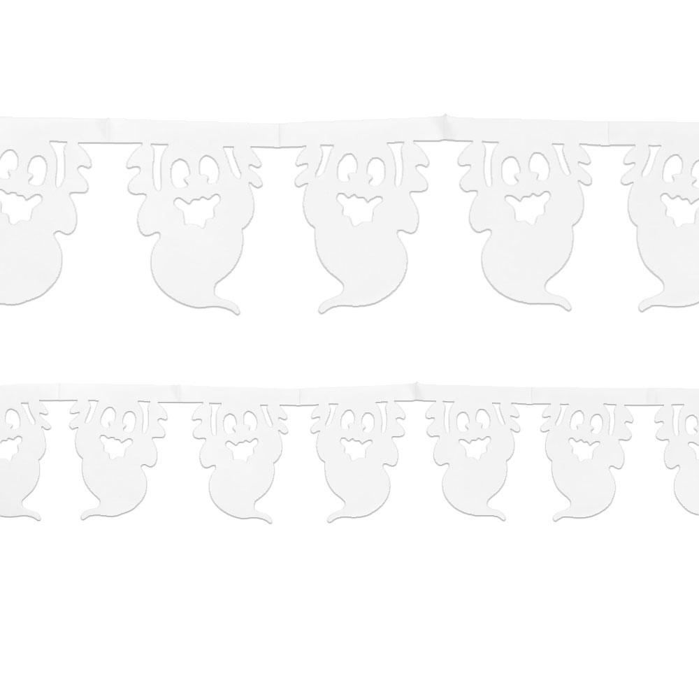 Spöken Pappersgirlang omfattar en girlang i form av spöken, i färgen vit. Girlangen är tillverkad av papper och mäter 6 meter lång.