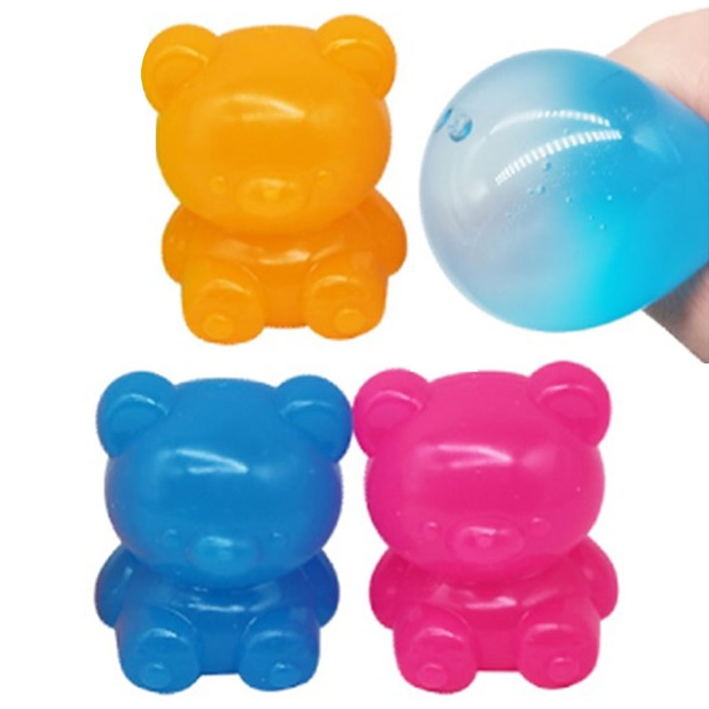 Squeeze Stretchy Teddybjörn omfattar en stretchig och mjuk björnformad stressboll. Björnen finns i färgerna rosa, blå eller orange; vilken du får blir en överraskning.