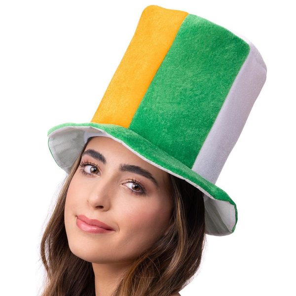 Hitta festens mittpunkt med denna St Patrick's Day Hög Hatt. Skapa en minnesvärd upplevelse med denna partyhatt, perfekt för att lysa upp rummet och atmosfären. En St Patrick’s Day hatt som passar alla som vill hylla det irländska arvet eller bara vara festens stjärna. Inspirerad av färgerna från Irlands flagga, är den här mjuka höga hatten gjord för festliga tillfällen som väntar på att bli oförglömliga.