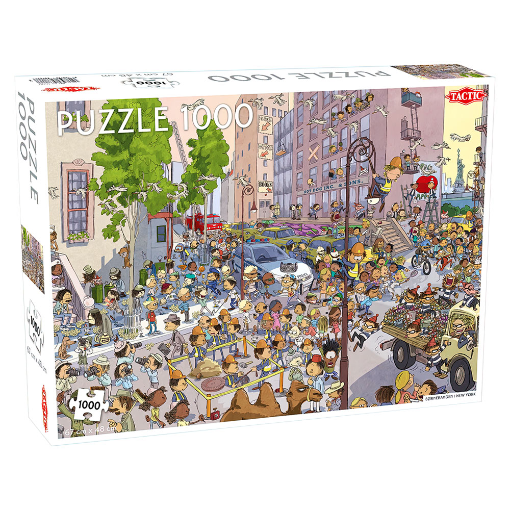 Roligt pussel som bjuder på en riktigt klurig utmaning! Detta pussel kommer nämligen i hela 1000 bitar och har ett väl detaljerat motiv av en stad full av människor och djur i full fart. Lägg bit för bit och se hur det tecknade stadsmotivet långsamt men säkert växer fram. Med detta 1000-bitars pussel kan du med andra ord garanterat hålla dig sysselsatt i timmar, perfekt för dig som gillar stora pussel och kluriga utmaningar.
