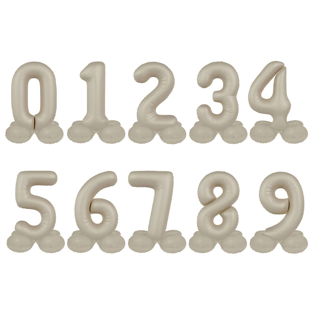 Stående Sifferballong Creamy Latte Matt omfattar en stående sifferballong i en matt lattefärgad nyans. Ballongen fylls med luft med hjälp av det medföljande sugröret.