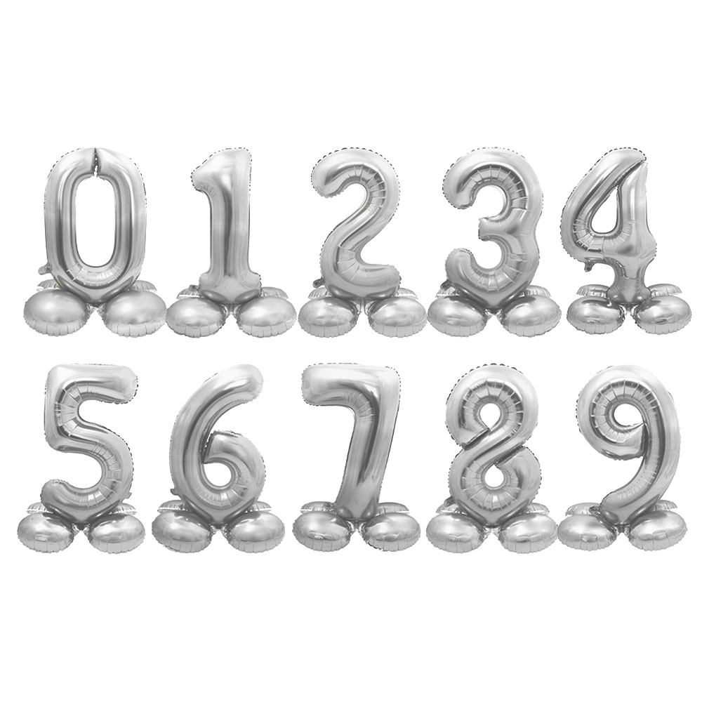 Stående Sifferballong Silver består av en stående sifferballong i silver. Ballongen är tillverkad av folie, fylls med luft och är ca 72 cm stor. Välj mellan siffrorna 0-9.
