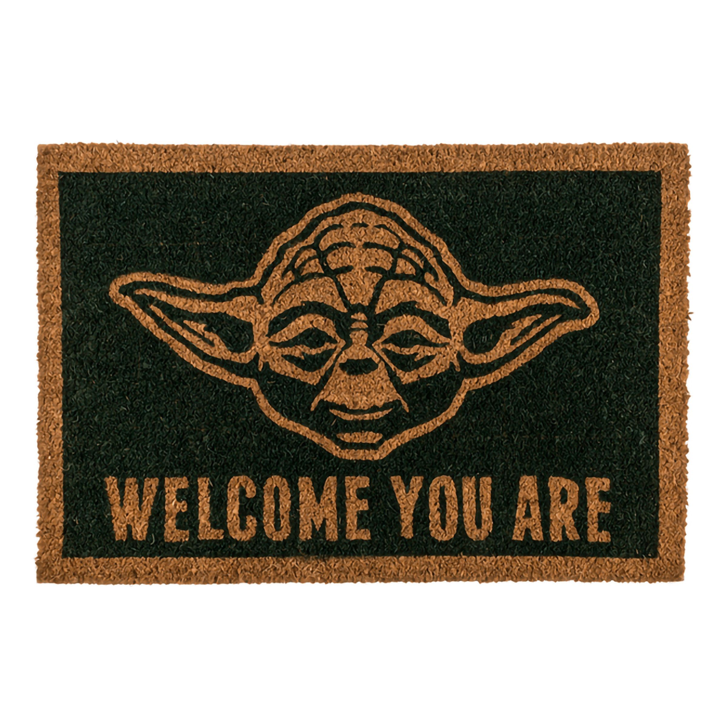 Star Wars Dörrmatta Welcome You Are är en klockren dörrmatta som kommer med motiv föreställande Yoda och texten "Welcome you are". Mattan är tillverkad av ett rejält och tätt borstmaterial som dessutom kommer med ett vattentätt gummimaterial undertill. Perfekt som present till en Star Wars-nörd eller som dekoration till Star Wars-kalaset!