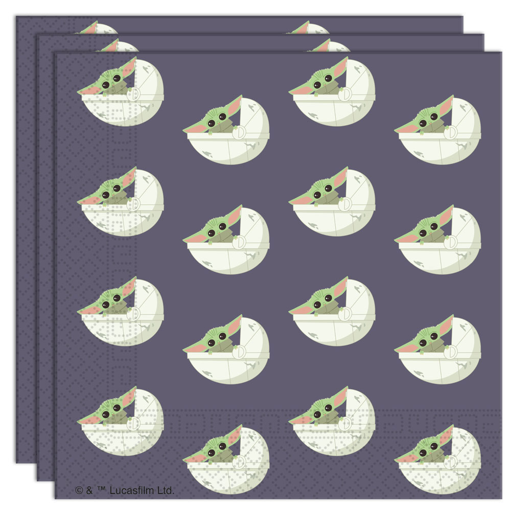 Fira fest och party med Baby Yoda och fina Star Wars pappersservetter. Roliga servetter som blir en härlig dukning till barnkalas med Star Wars tema, perfekt barnservetter och kalas tillbehör för en extra festlig kalasdukning för alla barn och kanske vuxna som gillar Baby Yoda.