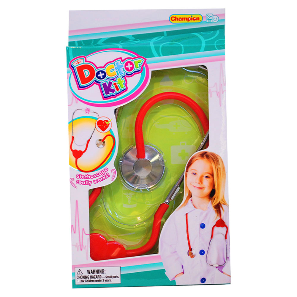 Stetoskop Barn omfattar ett leksaksstetoskop som fungerar som ett riktigt stetoskop. Tillverkat av plast och metall.