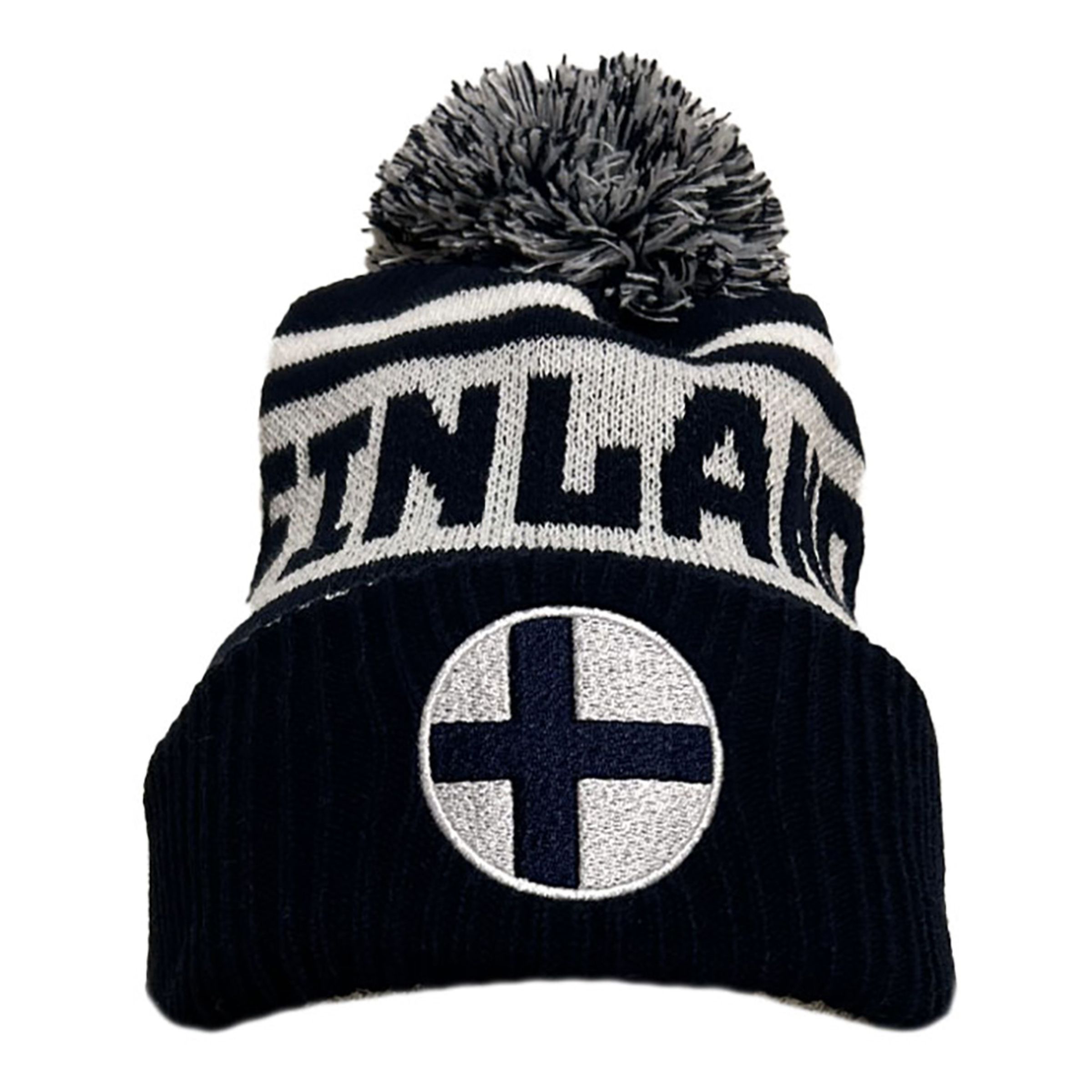 Håll dig varm och bekväm i denna tjocka och stiliga vintermössa med en charmig pom pom på toppen. Mössan pryds av texten "Finland" stickat på framsidan och den finska flaggan elegant broderad, vilket gör den till ett perfekt val för att visa din kärlek till Suomi.