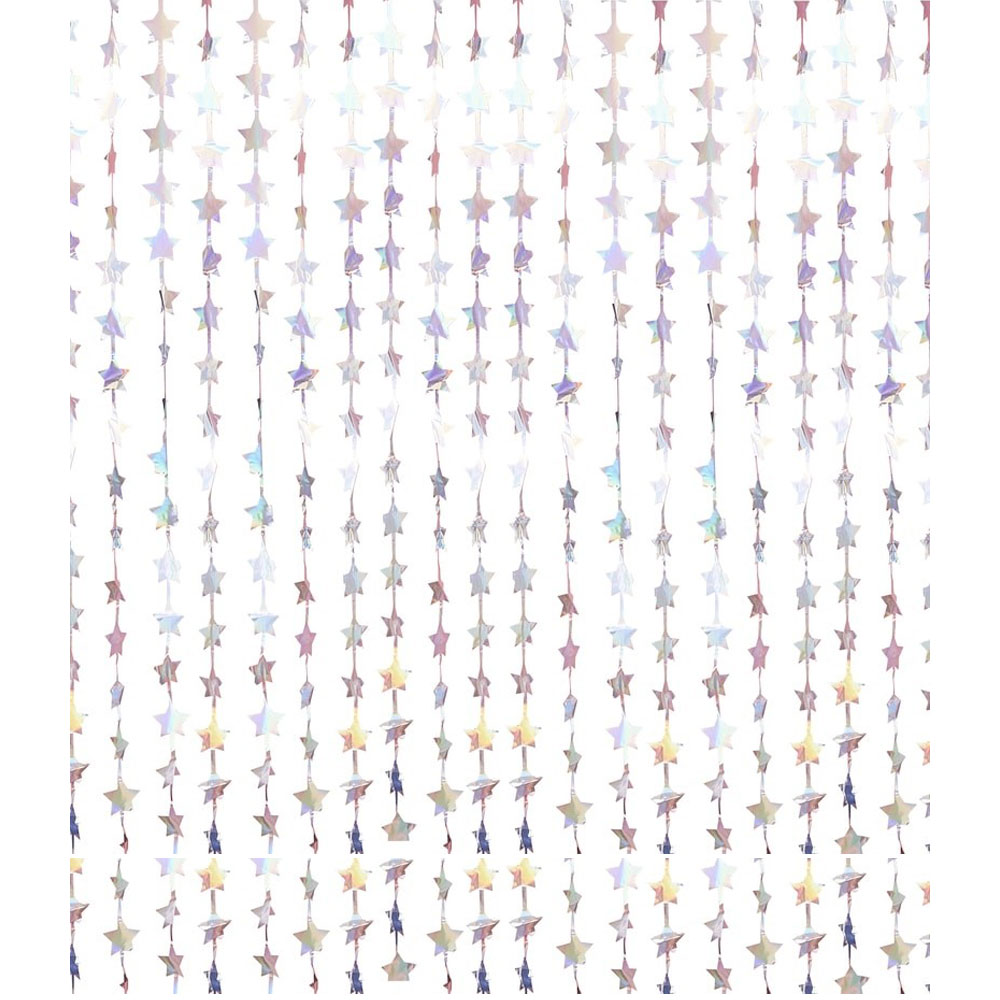 Stjärnfall Holografisk Väggdekoration omfattar en väggdekoration med hängande stjärnor som skimrar i regnbågens färger.