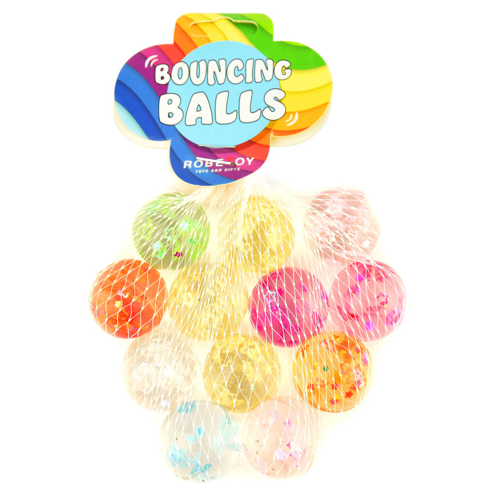 Studsa loss med coola studsbollar med färgglada stjärnor! I detta flerpack får du hela 12 stycken små studsbollar, perfekt för alla som vill studsa med extra många studsbollar, eller varför inte lägga som en kul överraskning i kalaspåsen.