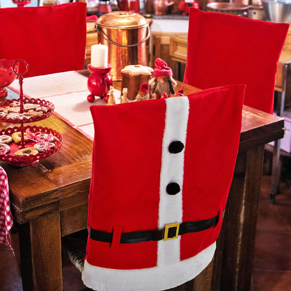 Fixa en extra rolig jul-dukning till julafton och julfest med ett fint och skojigt stolsöverdrag som ser ut som en tomte jacka! Med detta roliga stolsöverdrag får du en riktigt fin tomte-stol, ett måste för dig som vill ha en julbordsdukning utöver det vanliga med jultomtens fina tomerock.