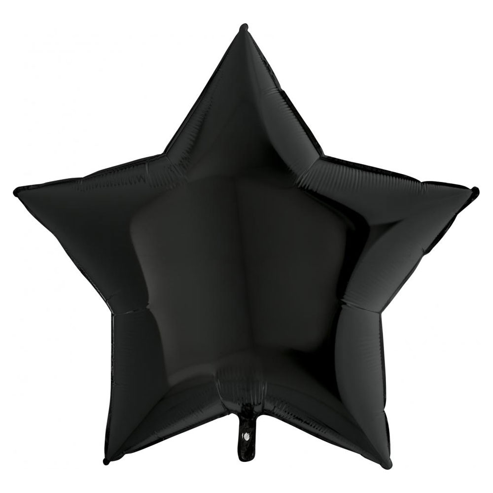 Stor Folieballong Stjärna Svart innehåller en svart folieballong i form av en stjärna. Blås upp ballongen med luft eller helium.