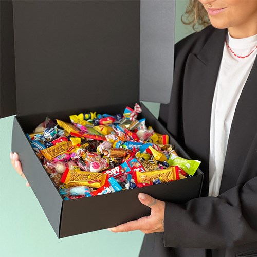 Överraska någon du inte kan träffa just nu eller tacka någon du tycker om med en gigantisk godislåda. Den ultimata gåvan för att visa uppskattning! Boxen innehåller godsaker som Dumle, Twix, Plopp, Geisha och massa annan god choklad, karameller och kolor. Här finns något för alla åldrar och smaker, perfekt för en hel familj att dela på under myskvällar eller att bjuda på under kalas och fest!