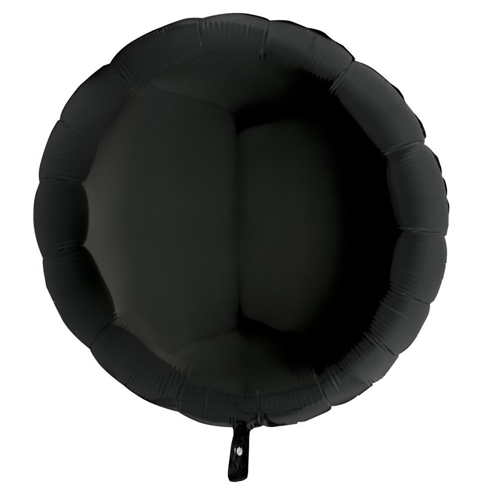 Stor Rund Folieballong Svart består av en rund folieballong i svart. Blås upp ballongen med luft eller helium. Tillverkad av folie.