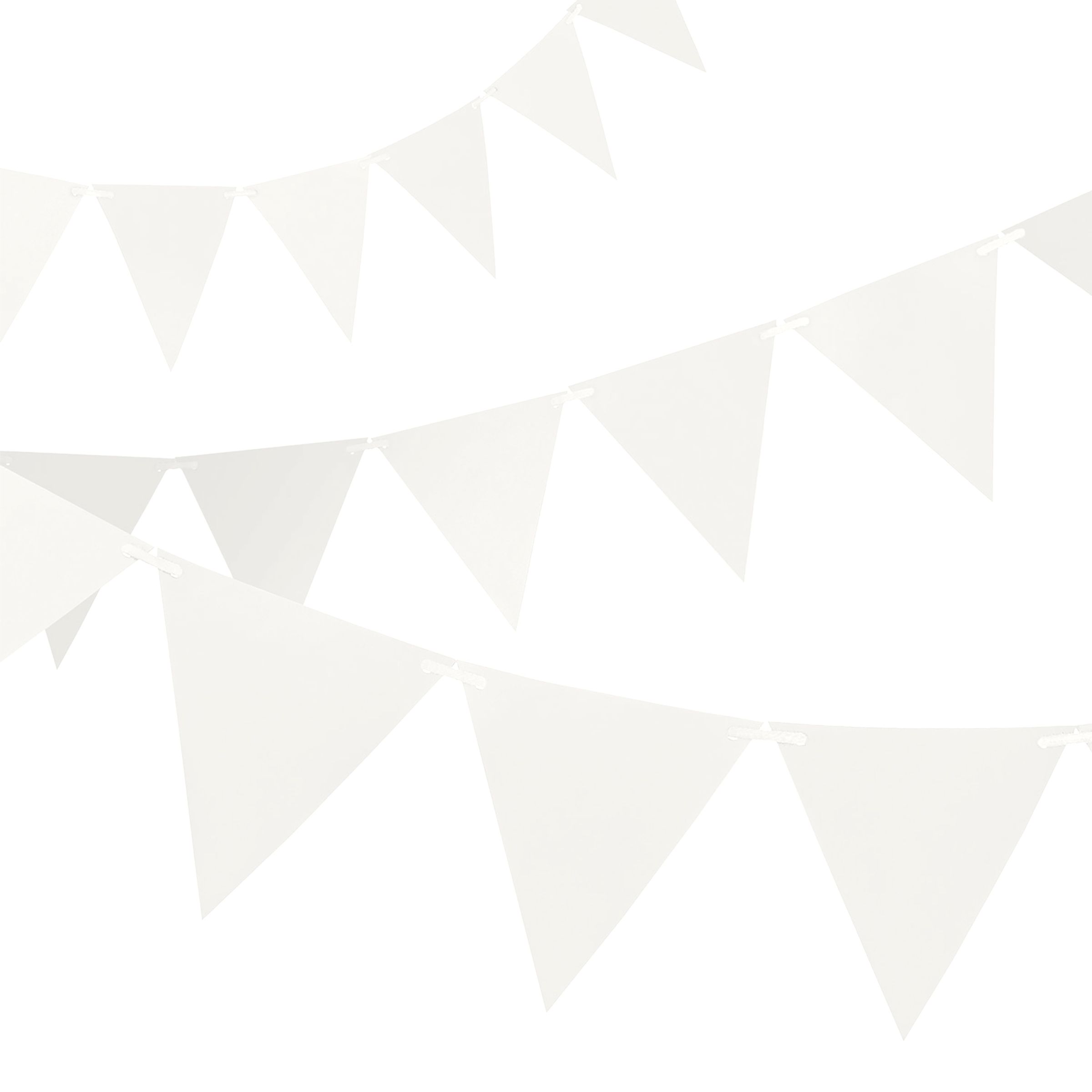 Stor Vimpelgirlang Vit inkluderar en girlang med vimplar i större storlek och kommer i en vit färg. Passar perfekt att dekorera med på bröllopet, dopet eller konfirmationen!