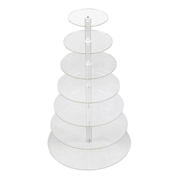 Cupcakeställ i Akrylplast är ett läckert kakställ där du kan ställa både kakor, cupcakes och tårta på toppen! Fatet passar perfekt på bröllopsfesten, födelsedagskalaset, eller på Baby Showern! Fatet har sju våningar som mäter cirka 15 cm, 19 cm, 22,5 cm, 26 cm, 30 cm, 34 cm och 37,5 cm. Längden mellan varje lager mäter 10 cm. Du kan ta isär stället för enkel rengöring och smidig förvaring!