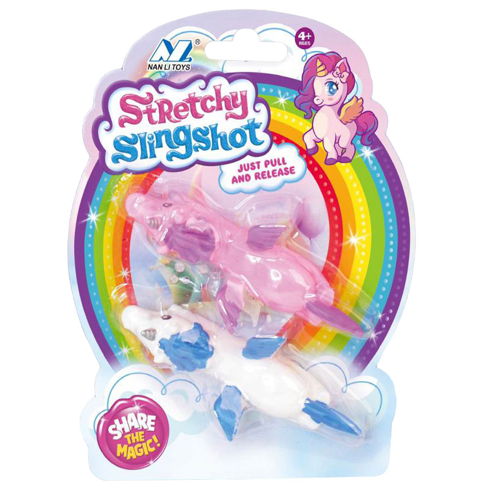 Stretchig Enhörning Leksak 2-pack omfattar två stretchiga leksaker i form av en enhörning i rosa och lila samt vit och blå.