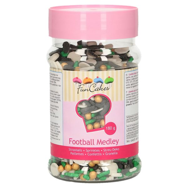 Ska du baka smarriga fotbollsmuffins eller kanske en häftig fotbollstårta så kommer denna fina strösselmix bli en helt perfekt dekoration! Snyggt och riktigt gott strössel i form av bland annat fotbollskor som enkelt piffar upp godsakerna. Passande strössel till tårtor, cupcakes, glass och andra desserter och bakelser.