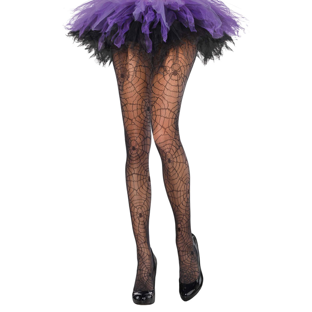 Strumpbyxor Spindelnät omfattar ett par svarta nylonstrumpbyxor för vuxna med häftiga spindelnätsmotiv.