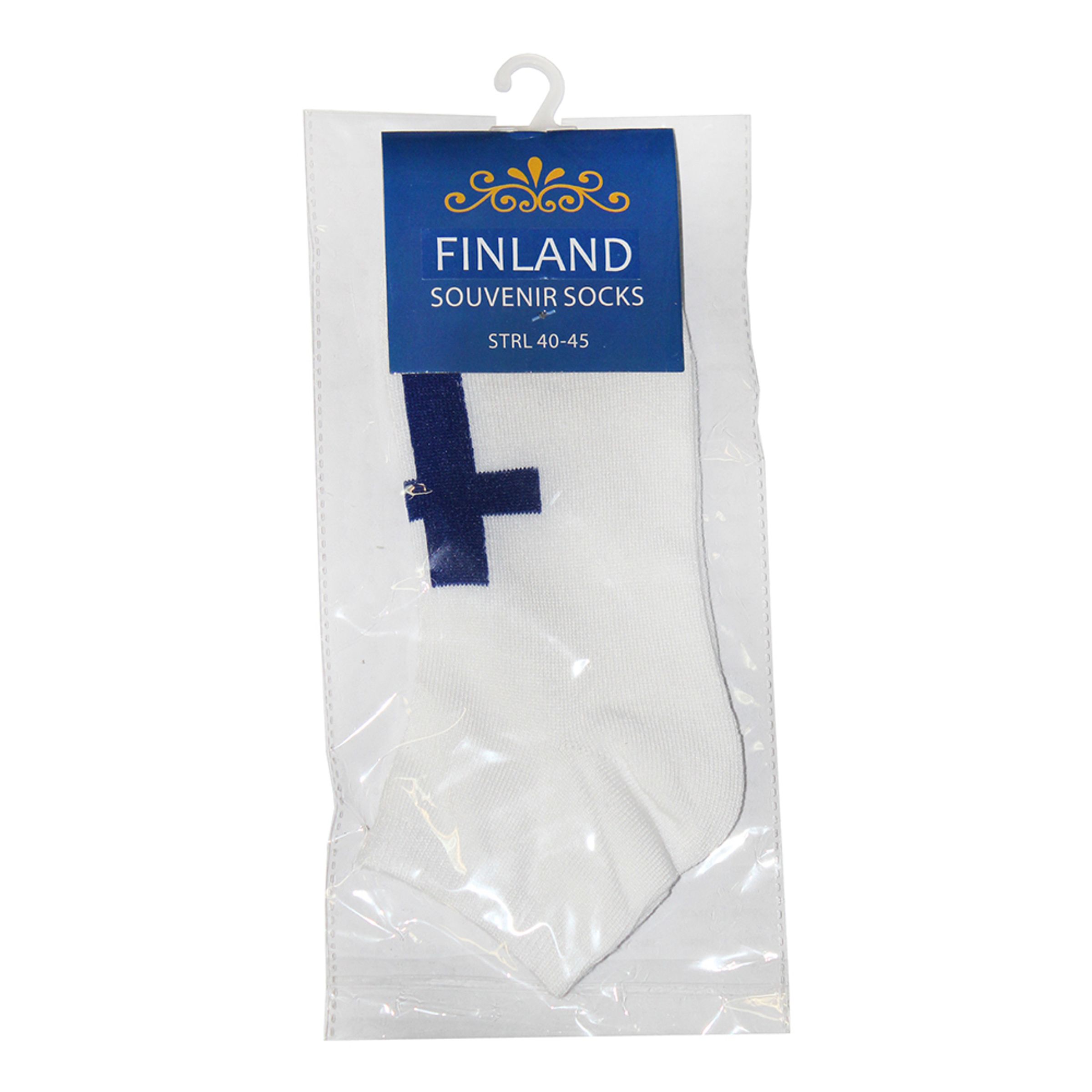 Har du rötter i Finland eller känner du någon som kommer från de tusen sjöarnas land? Då tror vi att dessa trevliga strumpor ska passa, i alla fall om din skostorlek ligger någonstans mellan 40-45. De sköna strumporna är av en ankelmodell och de kommer i 2-pack, så du kan använda det ena paret medan det andra ligger i tvätten!