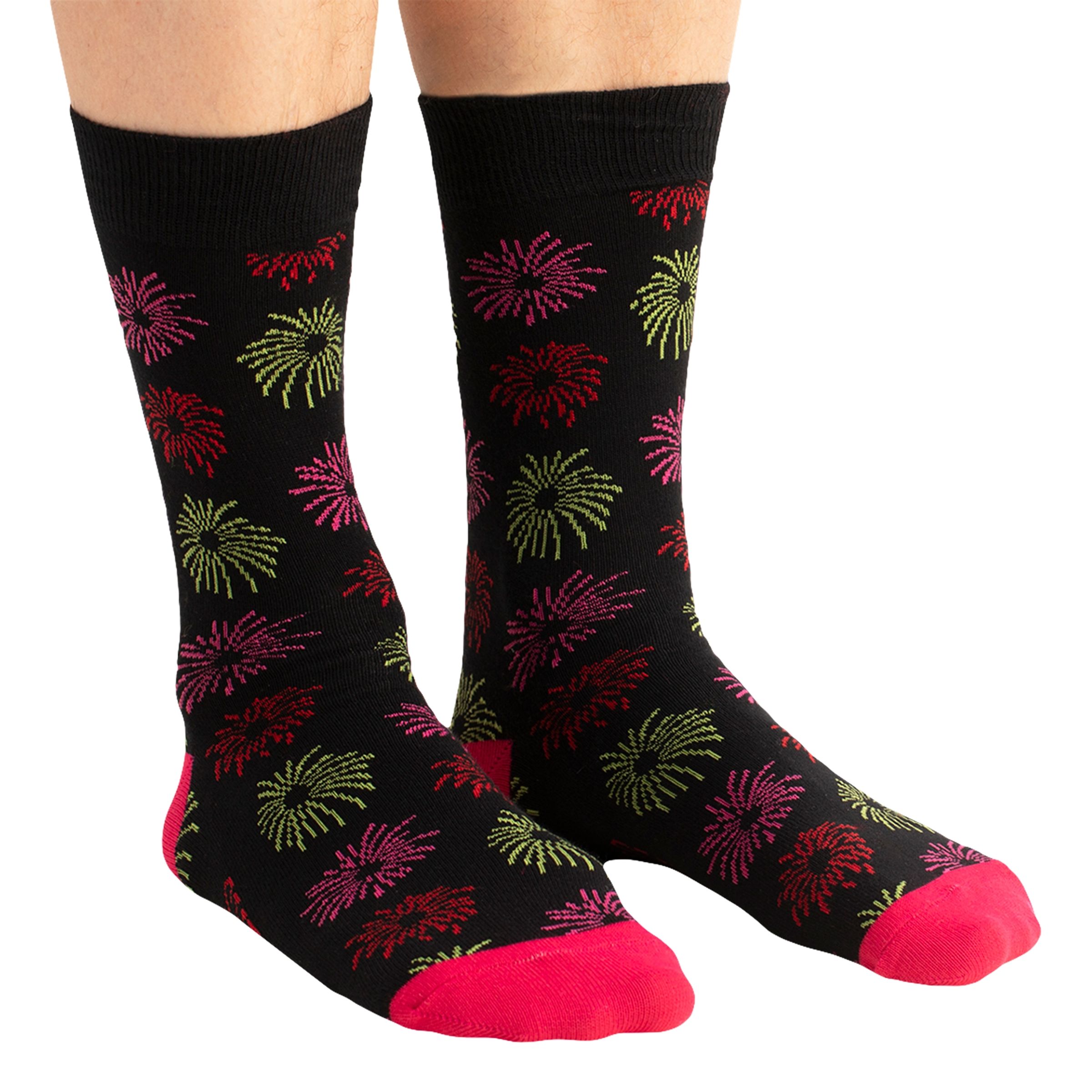 Fira in det nya året med stil! Klä fötterna i dessa festliga fyrverkeri-strumpor som du enkelt matchar med din pampigaste nyårskostym för att ta outfiten till nästa nivå!