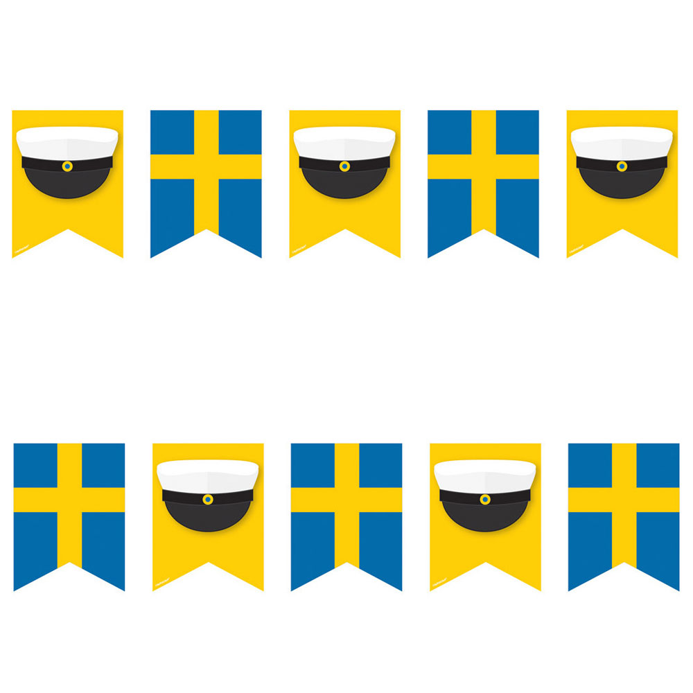Med dem rätta dekorationerna får du enkelt till den ultimata feststämningen! Denna snygga flaggirlang med svenska flaggan och studentmössor blir en perfekt studentdekoration till både mottagningen och festen. Häng upp girlangen som den är eller matcha den med andra studentdekorationer som exempelvis ballonger.