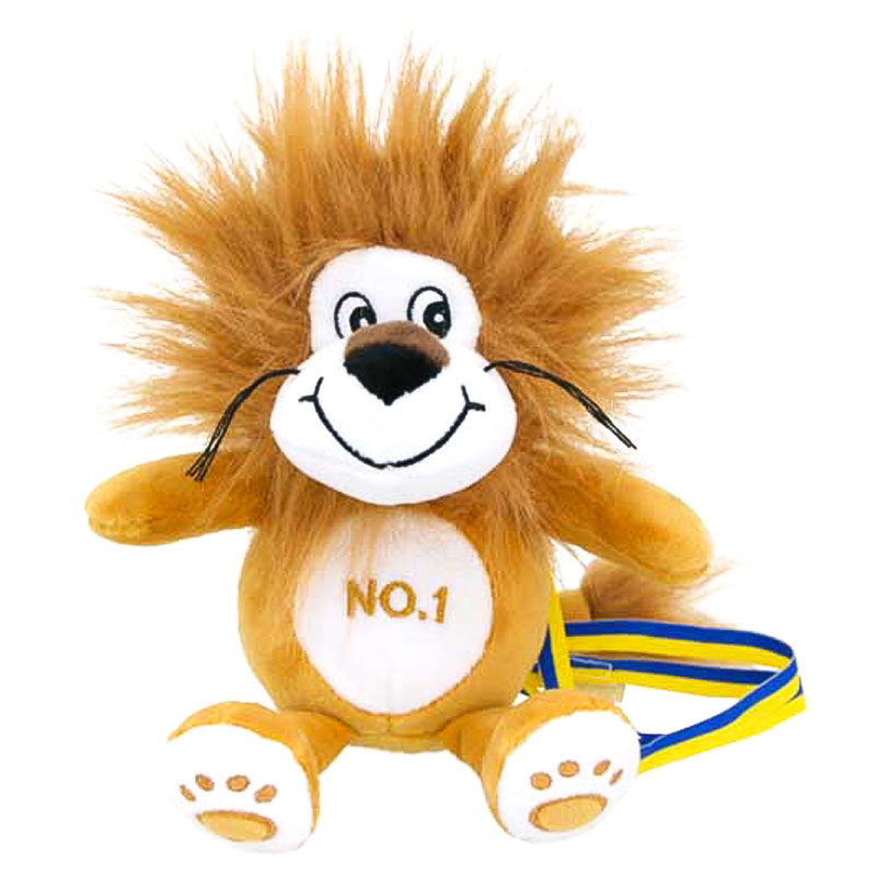 Student Lejon omfattar en 23 cm stor studentnalle i form av ett lejon med studentmössa och texten "No.1" på magen. Lejonet har även ett blå-gult halsband. Tillverkad av polyester.