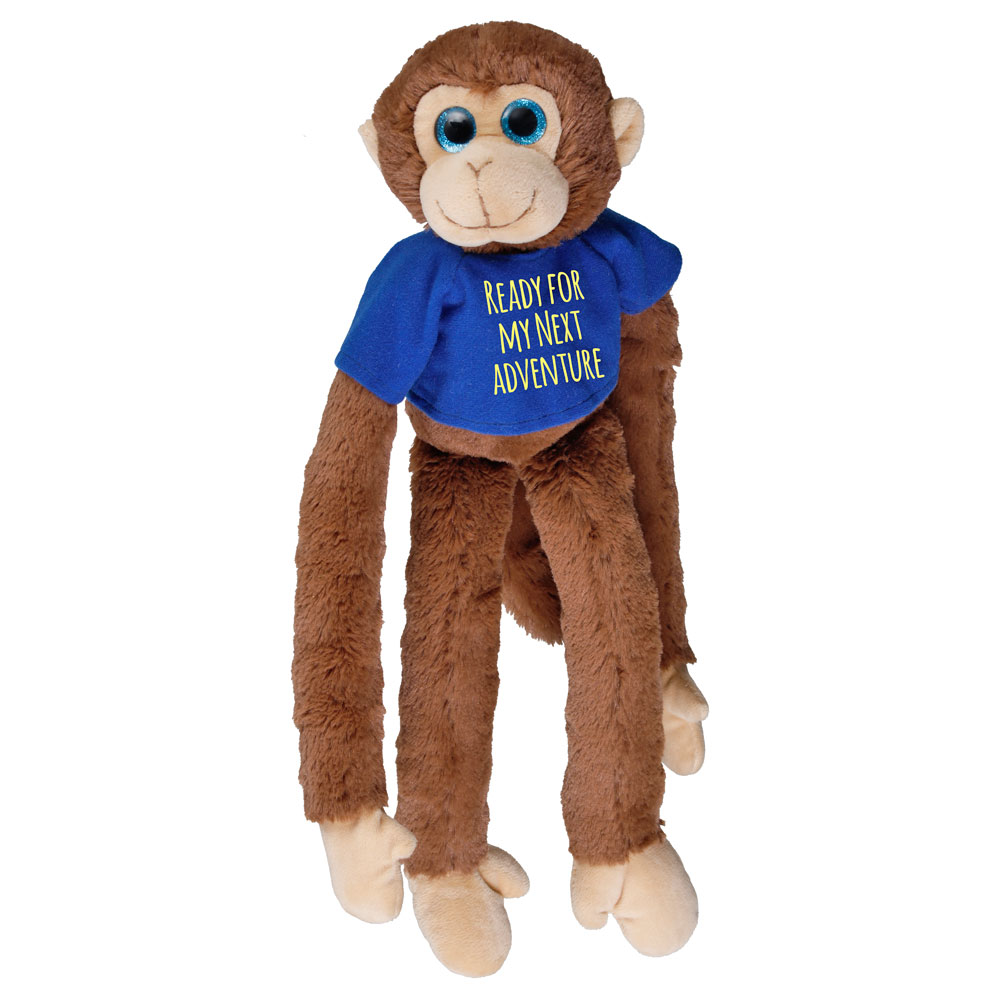 Härlig apa som blir ett gulligt och lite annorlunda student-gosedjur, perfekt student-nalle för den som vill sticka ut lite under student firandet. En fin apa och skojigt mjukisdjur med en Ready for my next adventure tröja som passar utmärkt till en student som är redo för nya äventyr, ett student-djur som visar vägen mot framtiden.