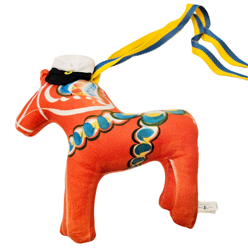 Studentnalle Dalahäst är ett charmigt gosedjur i form av en dalahäst med en liten studentmössa och ett blå/gult band som går att hänga runt nacken.
