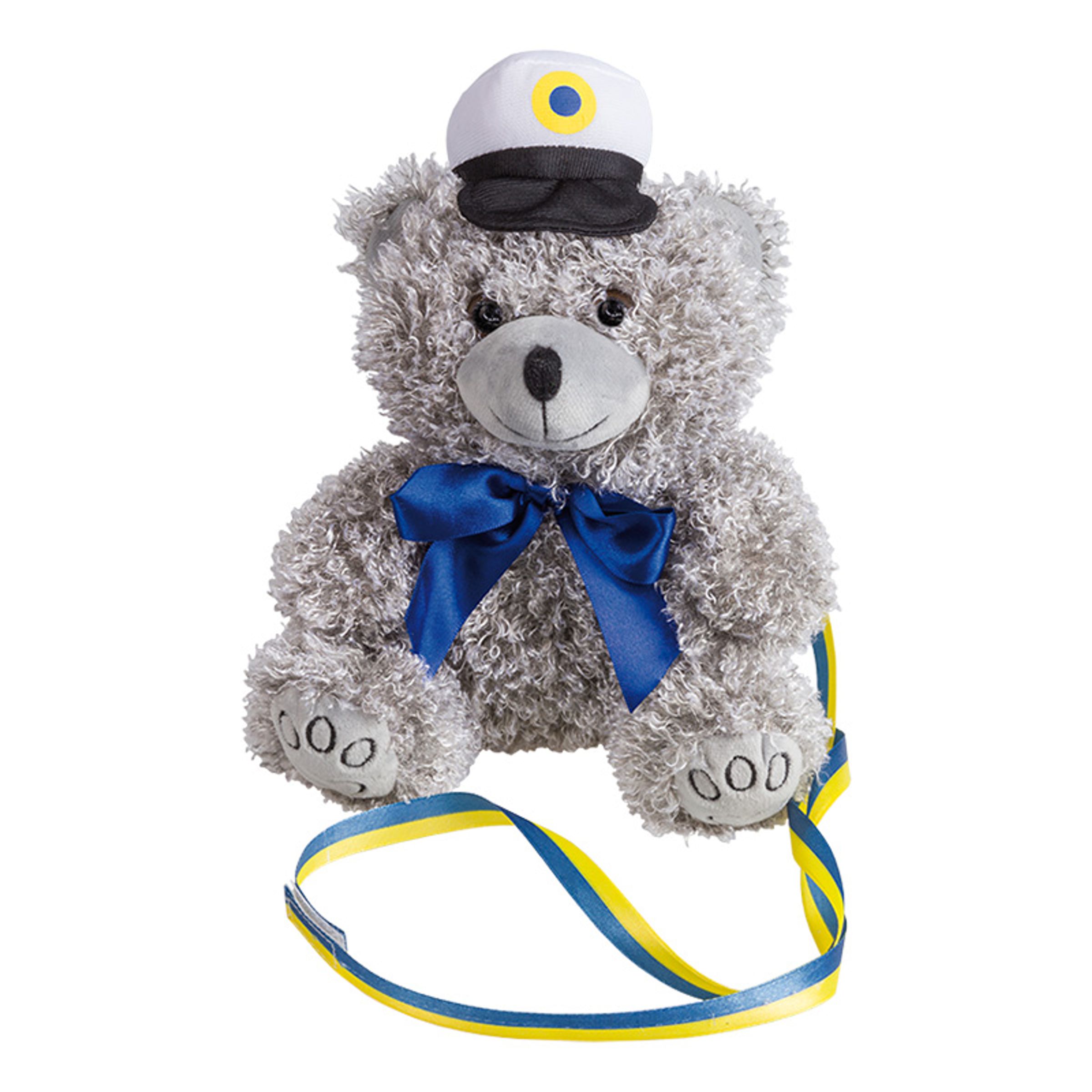 Studentnalle Grå med Rosett är en mjuk, grå nalle som hängs runt halsen med hjälp av ett blågult band. Nallen har bruna plastögon, en blå satinfluga och en liten studentmössa.