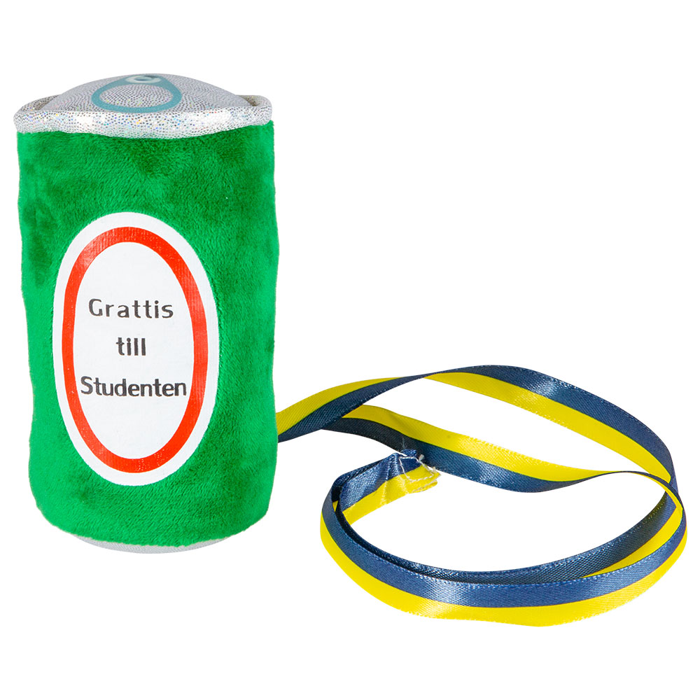 Att dricka öl på studenten är ju nästan ett måste och med denna roliga studentnalle kan du ha en runt halsen hela kvällen. Kul student gosedjur i form av en grön ölburk med klassiskt blå-gult halsband som låter sig hänga den snyggt runt halsen. En utmärkt studentpresent att ge till den som älskar öl!
