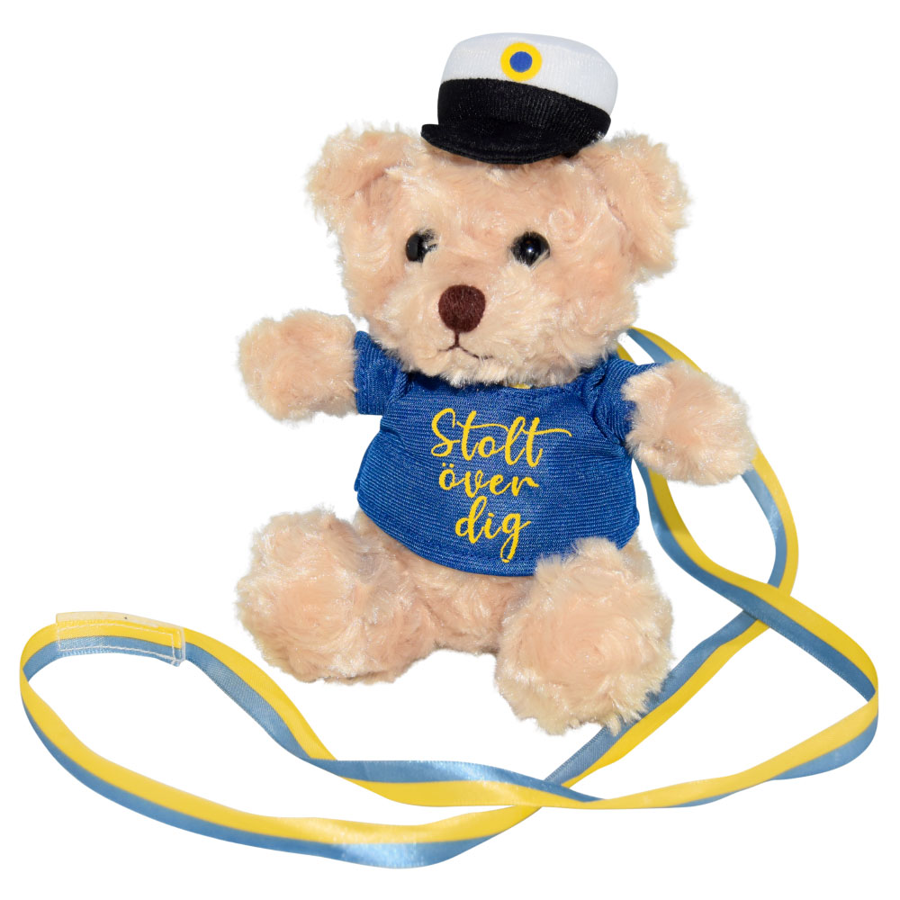 Fluffig och gullig student-nalle med Stolt över dig tröja och studentmössa, perfekt mjukisdjur för en nybakad student som gillar fina nallar. Med detta student-gosedjur får din student med sig en söt liten björn på firandet, ett utmärkt student-djur att hänga om halsen. Låt festen börja med denna fina student björn!