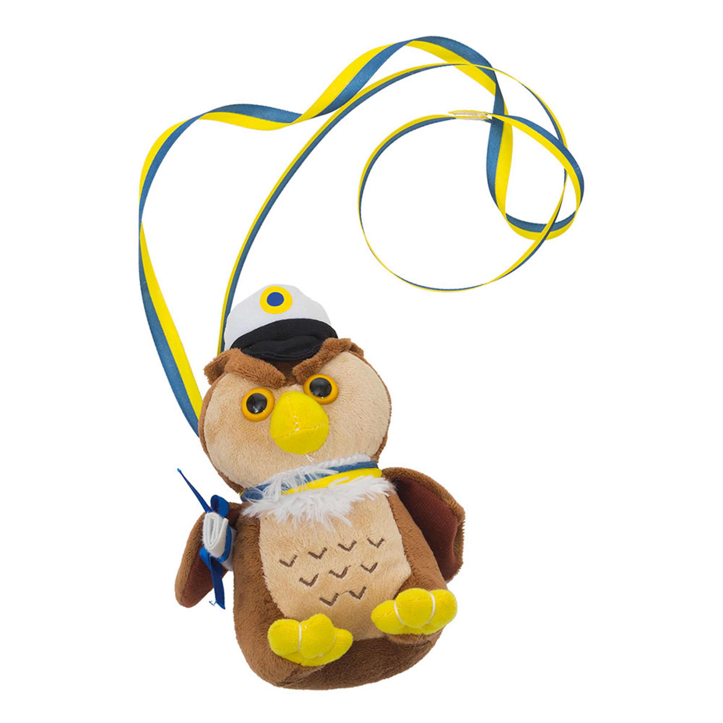 Ett blågult band medföljer så att du lätt kan hänga gosedjuret runt halsen på din student.