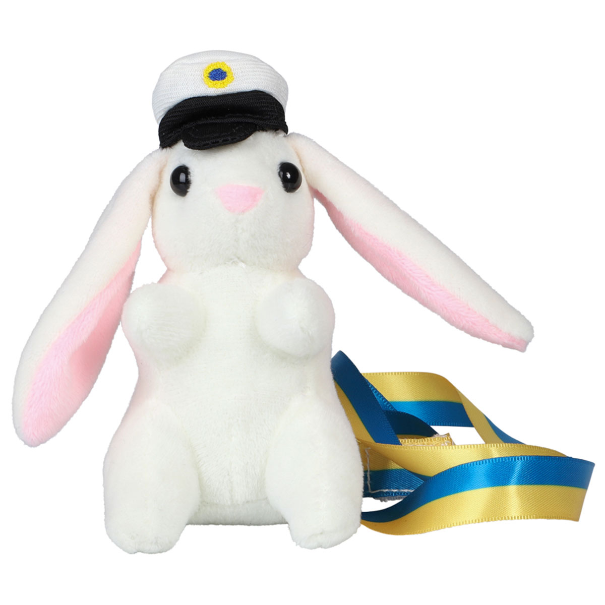 Denna charmiga studentkanin i vitt är det perfekta studenthänget för att sprida glädje under firandet. Ett mjukt studentdjur med blågult band och smart kardborre gör varje studentnalle redo att hänga med runt halsen.