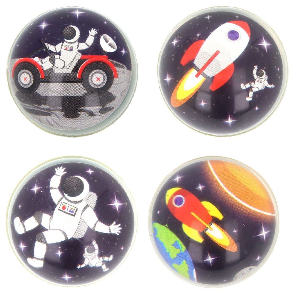 Studsboll Rymd omfattar en studsboll med motiv av rymdtema. Studsbollen finns i fyra olika motiv men de säljs osorterade och styckvis så det blir en överraskning vilken du får.
