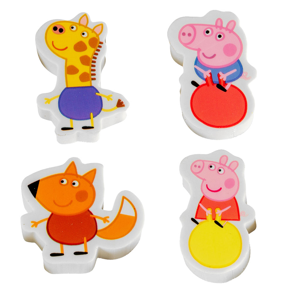 Suddgummin Greta Gris omfattar ett 4-pack färgglada suddgummin med olika karaktärer från Greta Gris. Sudden är mellan ca 2-4 cm breda och 3,5-4 cm höga.