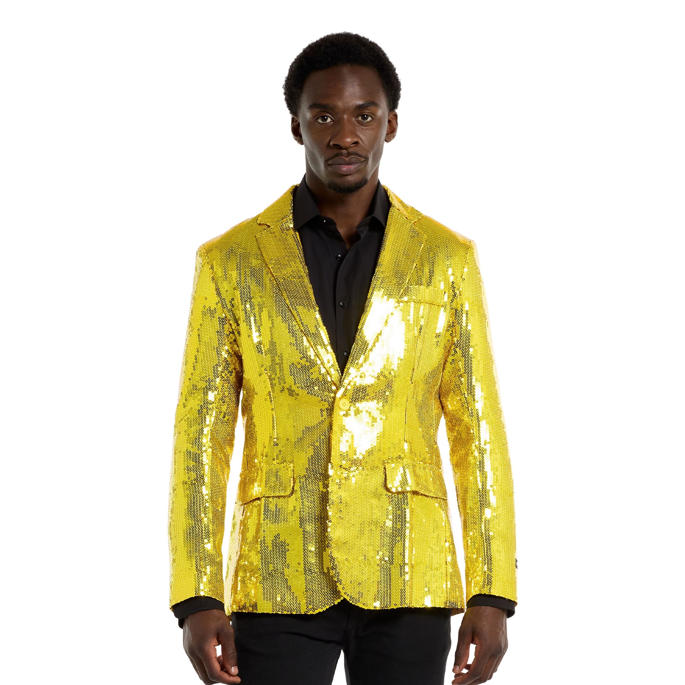 Bröllop, schlagerfest eller en vanlig dag på kontoret? Oavsett tillställning kommer den här gula paljettkavajen ge ett ordentligt intryck på omgivningen! Med sina bländande gula paljetter och bekväma passform kombinerar den stil och komfort på bästa sätt.