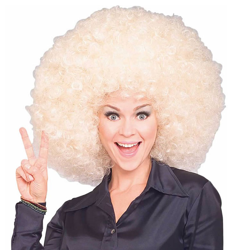 Även om ditt hår är snyggt som det är så skadar det inte att testa på nya roliga frisyrer inför kommande evenemang som t.ex. denna blonda afroperuk!