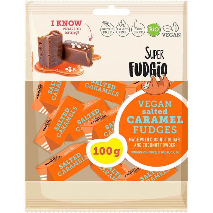 Fudgekola med smak av salt karamell, utan gluten, glukos- och fruktossirap.