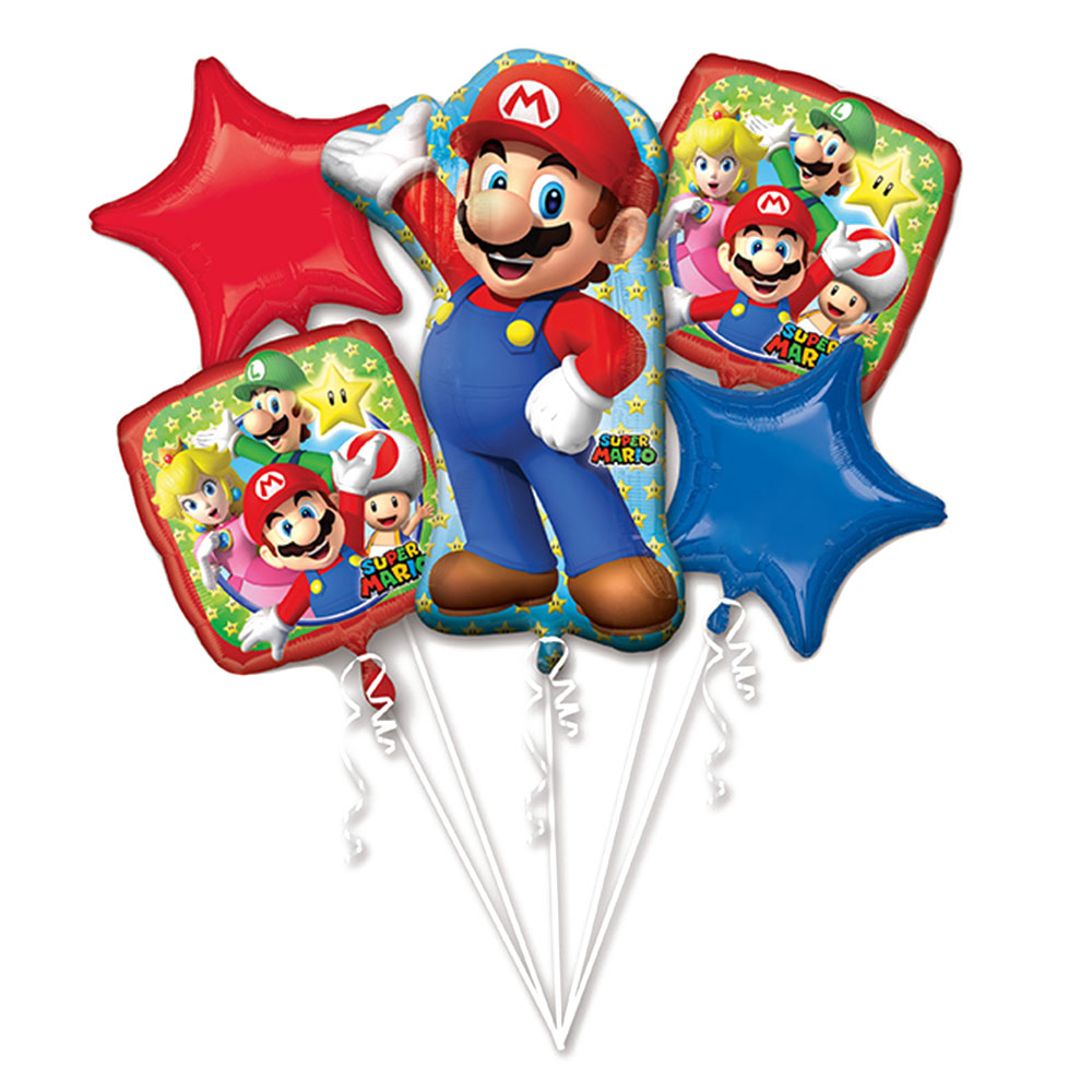Super Mario Folieballong Kit omfattar en mix med fem stycken folieballonger med Super Mario tema. Kitet består av en stor supershape ballong i form av Super Mario, två fyrkantiga och färgglada ballonger med motiv av SUper Mario och hans vänner samt två stycken stjärnforamde ballonger, en i blått och en i rött. Samtliga ballonger är i folie och fylls med helium eller luft.