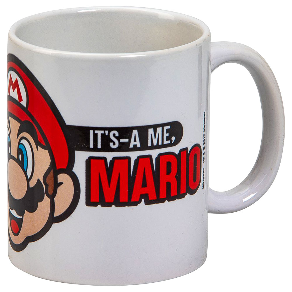 Super Mario Mugg omfattar en vit porslinsmugg med Super Mario motiv och texten "It's-A Me, Mario". Muggen rymmer 325 ml och tål både mikro och diskmaskin.